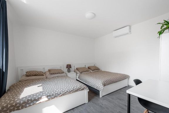 book "ground floor apartment" so your dog is able to access the room (others are via stairs reachable) / booking for 2 persons